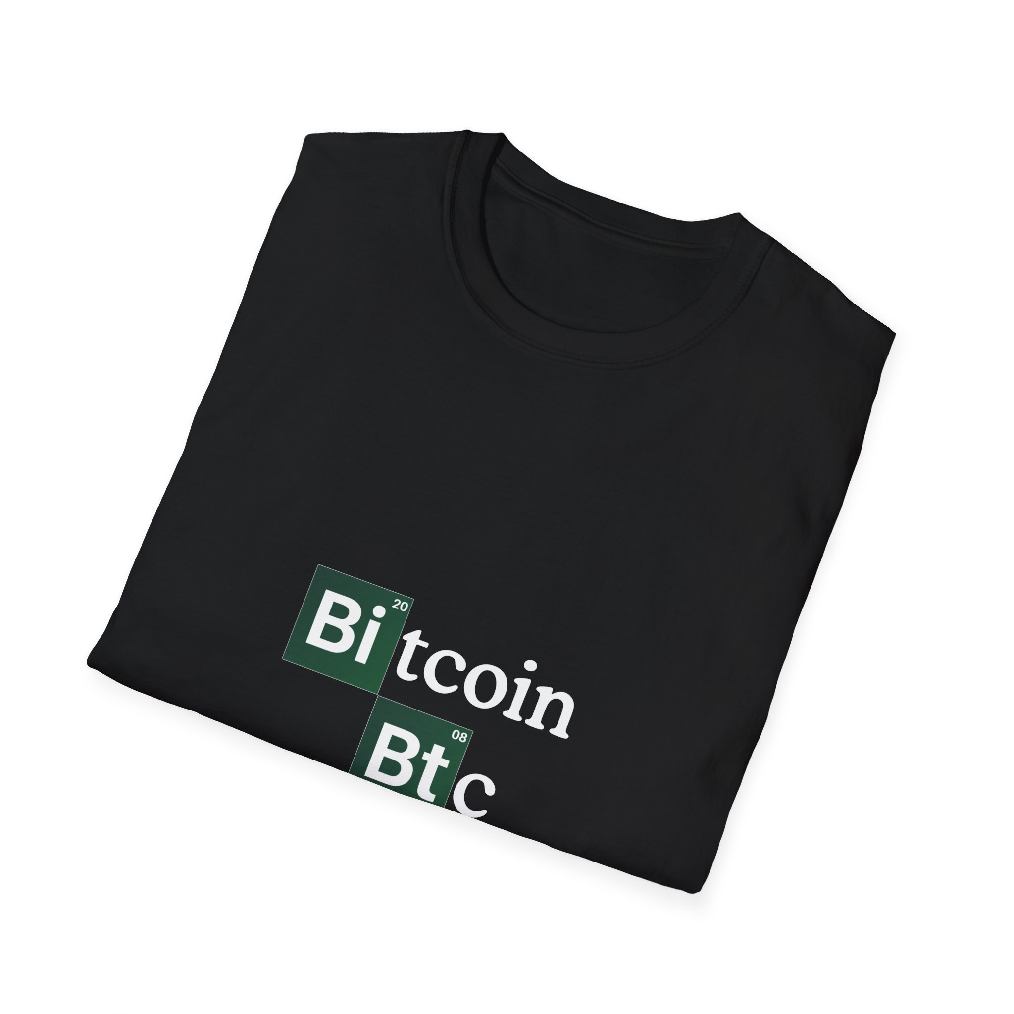 A unique Bitcoin design inspired by the logo of Breaking Bad, giving off a cool and trendy vibe. Perfect for cryptocurrency enthusiasts and fans of the TV show. Ideal for casual wear or as a statement piece. Relevant for Bitcoin-related holidays or events.