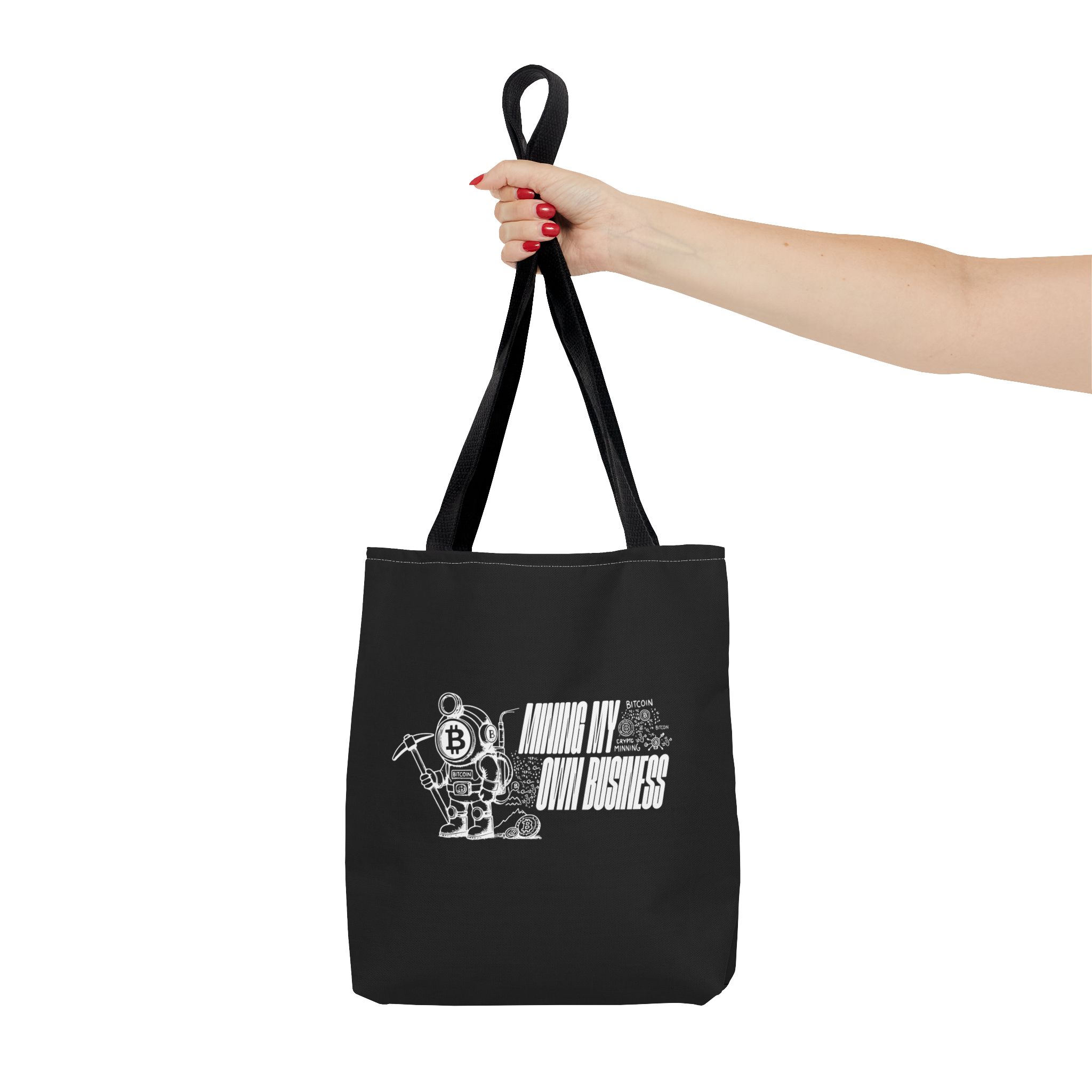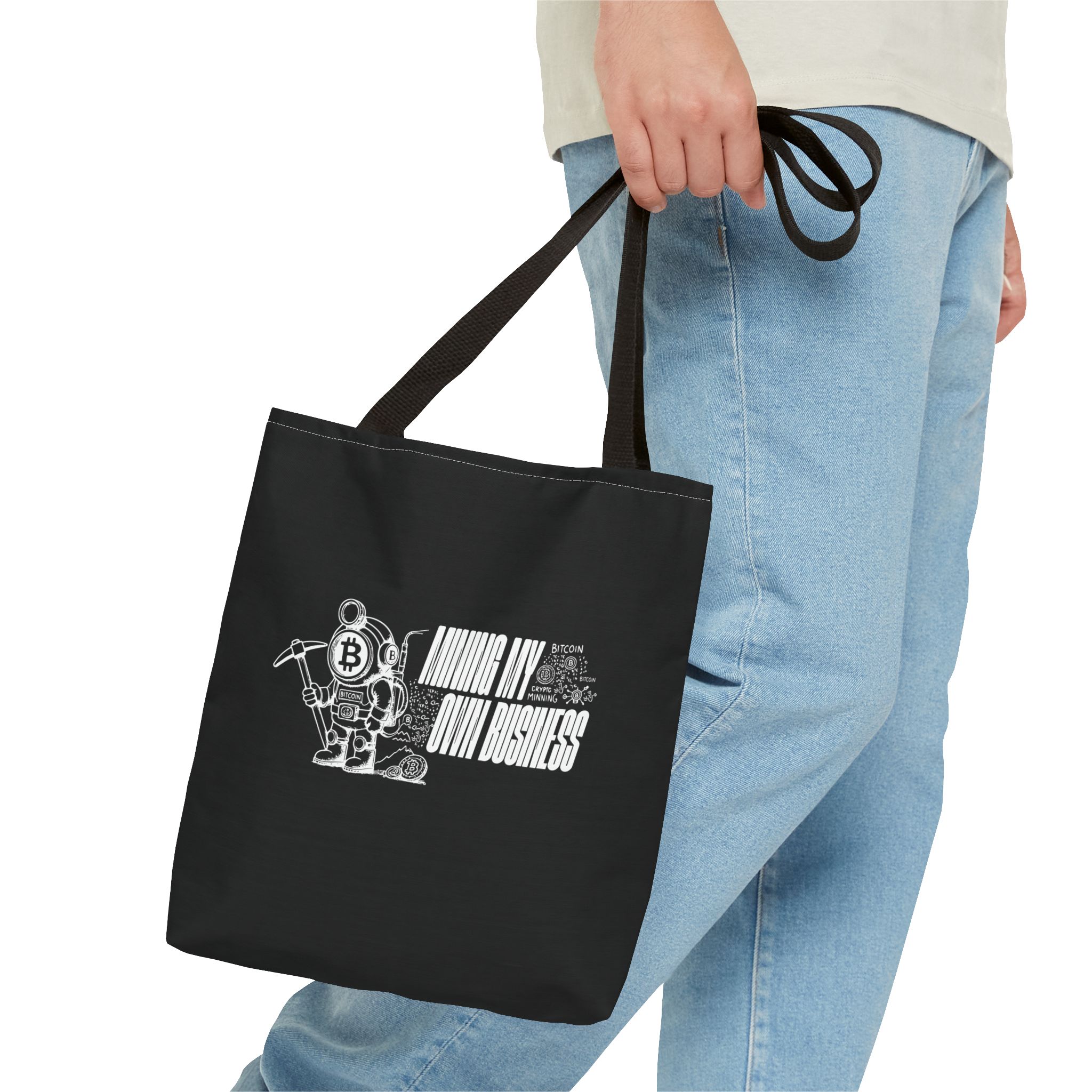 Carry your essentials in style with the Mining My Own Business Tote Bag ! Perfect for crypto fans on the go.