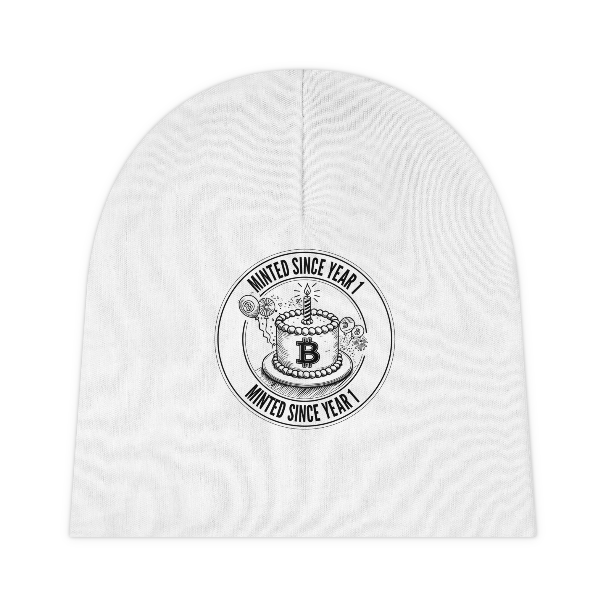 Keep your baby warm and stylish with the Minted Since 1 Year Baby Beanie! Ideal for tiny crypto fans.